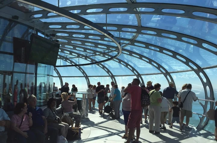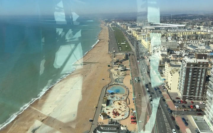 The British Airways i360 - A 162-metre observation tower on the seafront of Brighton. A huge donut shaped glass enclosed platform lifts you 140 metres. Spectacular views of Brighton and the south coast. After losing money for many years, this venue unceremoniously closed. It's now a strangely phallic shell of a building.